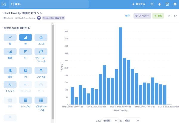 集約方法はstartTimeJpを秒ではなく時間別にカウントするようにします。